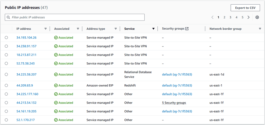 Além disso, a AWS lançou o Public IP Insights, um recurso gratuito do Amazon VPC IP Address Manager, para monitoramento, análise e auditoria eficientes do uso de endereços IPv4 públicos. Esse recurso oferece insights detalhados sobre tipos de IP público e o uso de EIP, contribuindo para um melhor entendimento do perfil de segurança.