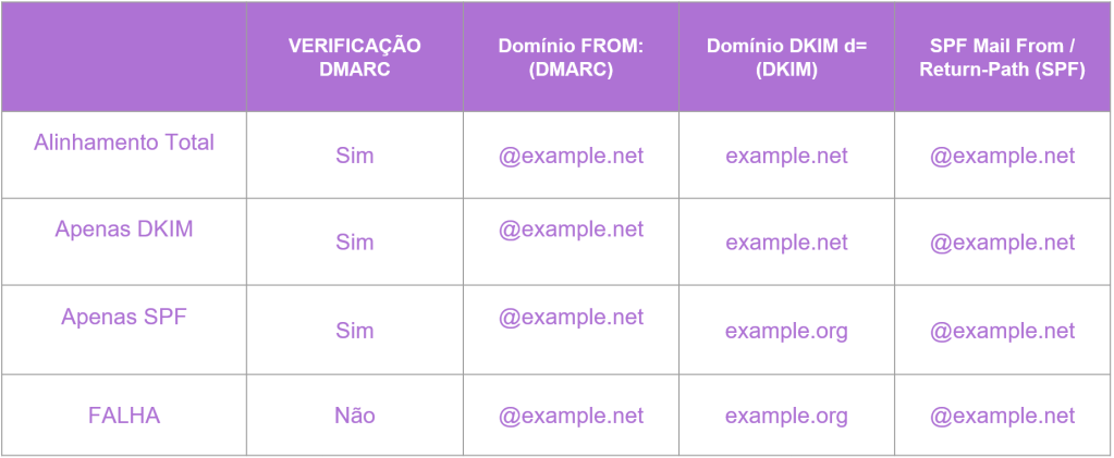 - Passar na verificação SPF usando o mesmo domínio do cabeçalho “From”.